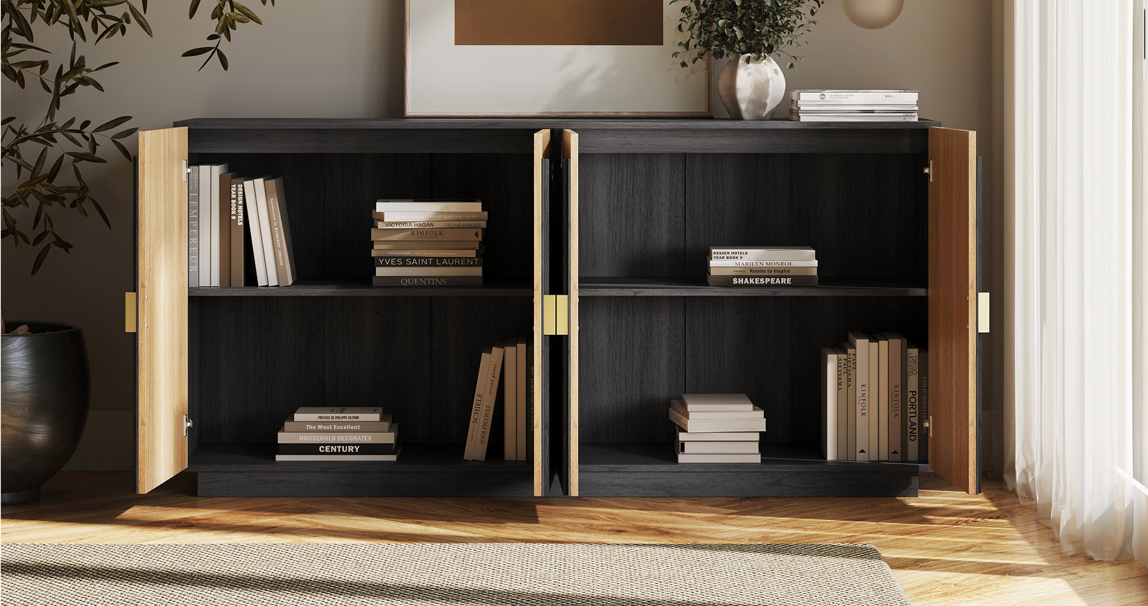 Offering generous storage space, including open shelves and hidden compartments, it ensures your media essentials stay organized and clutter-free.