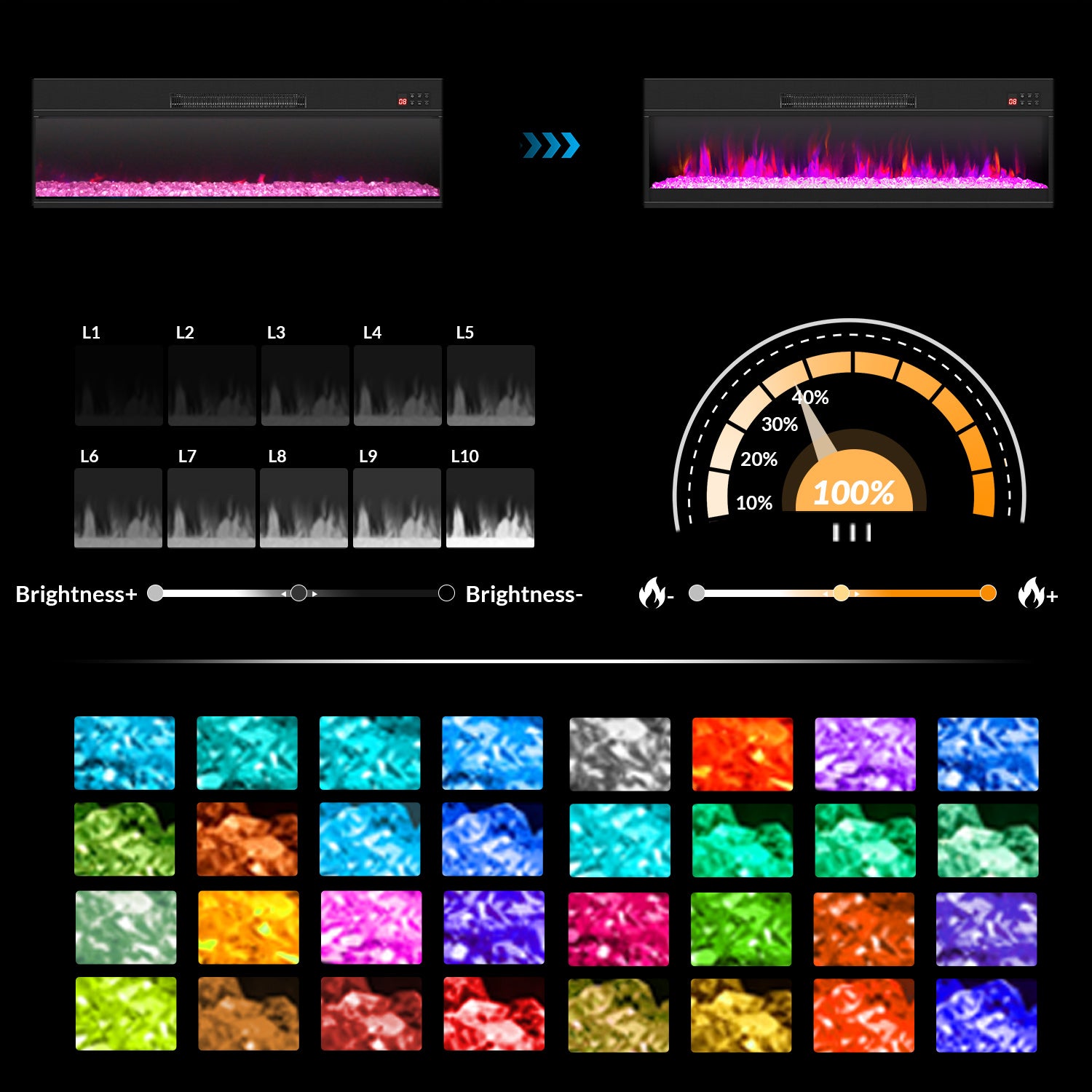 Forget bland TV stands—this floating fireplace TV stand is a game-changer! Choose from a stunning array of 32 solid colors or let the dynamic cycling mode set the mood. With 10 flame brightness levels and 10 speed settings, you can create the perfect atmosphere for movie nights, romantic evenings, or relaxing after work. Whether you're binge-watching or entertaining, this bad boy adds serious style and warmth.