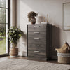 With five spacious drawers and a clean, modern silhouette, this dresser blends practical storage with understated style. It is crafted from certified engineered wood, offering a refined look with dependable quality. Rose gold handles add a subtle metallic touch, elevating its contemporary appeal. Ideal for bedrooms, nurseries, or guest rooms, this 5-drawer dresser features pre-mounted drawer slides for quick assembly and smoother daily use.