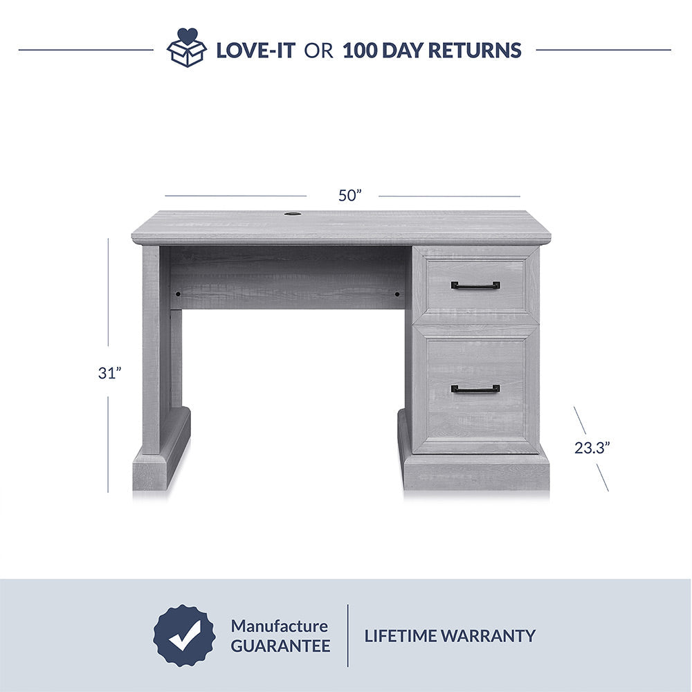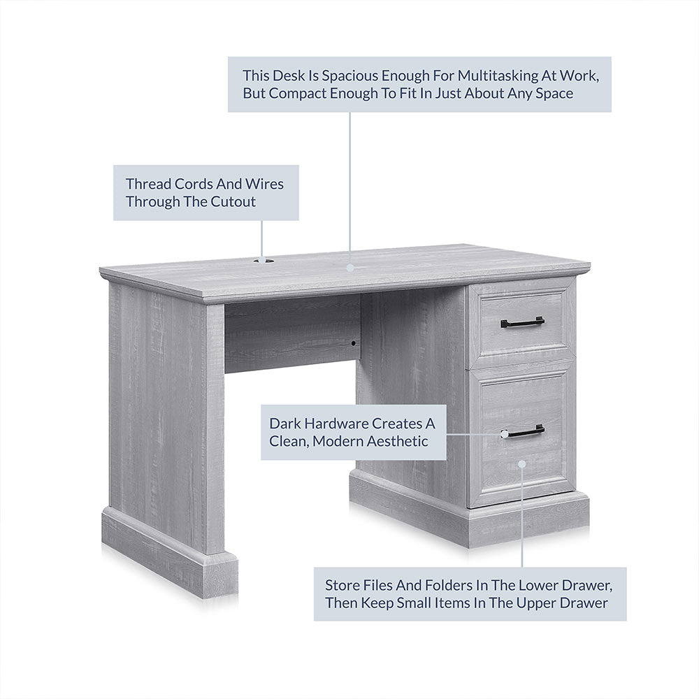 The classic desk, is the perfect foundation for traditional ensembles, easily refresh stylish for your homework space. Crafted of ECO-friendly PB board and features a spacious desktop, 2 drawers, and 3 open cubbies, turn your ensemble into a well-edited workspace in limited space.