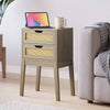 Carl Small End Table with 2 Rattan Drawers & Charging Station