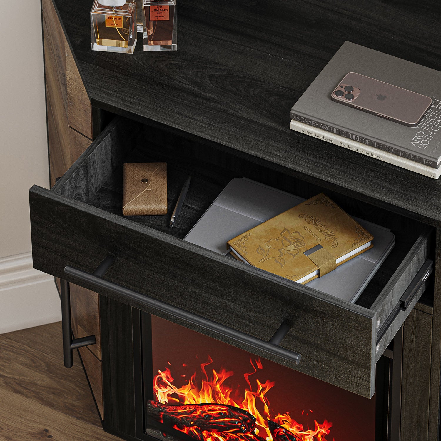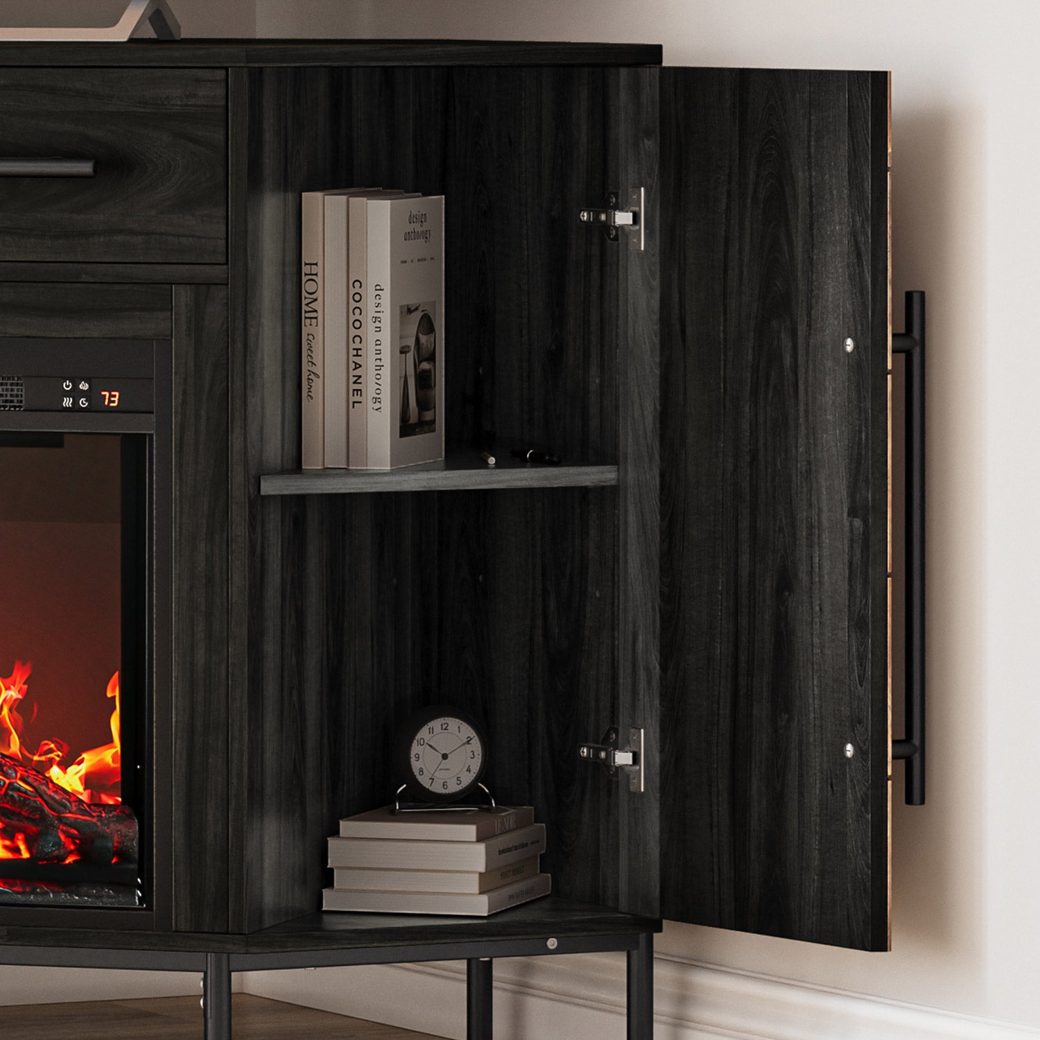 The dark wood finish matches the rest of the entertainment center while keeping your living room looking clean and organized.