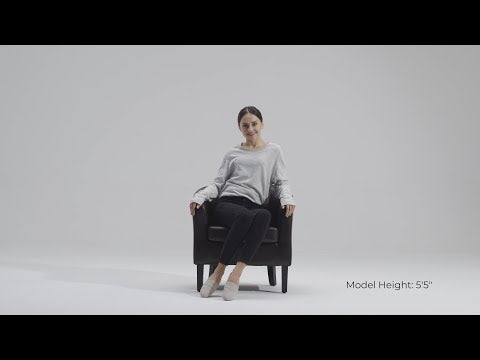 That cushion is also a full four inches, deep and thick to provide the most comfort possible in a club chair. The elegant simplicity of Belleze's accent chair design includes the contrast between the faux leather hue of the seat and the black flared legs of the chair.