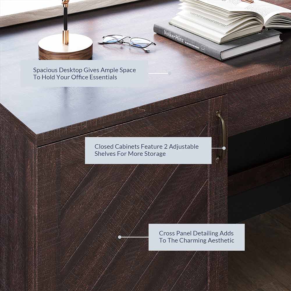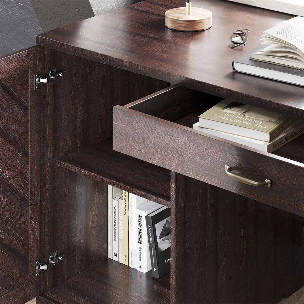 Create an elegant and functional workspace with this Hilo home office desk. Its spacious tabletop surface provides sufficient room for all your must-have desk essentials – laptop, notepads, stationery, and your coffee mug. A spacious drawer and two adjustable shelves offer concealed storage for your accessories and larger items, ensuring your workstation stays neat, clutter-free, and well-organized. Enjoy long-lasting durability with this sturdy executive desk, thanks to its sturdy manufactured wood construction. This table comes ready to assemble with all hardware included. Cleaning is easy - just wipe with a dry cloth.