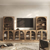 Elevate your living room or family room with the BELLEZE 6-piece modular TV stand set. Featuring 4 arched glass door cabinets and 2 hutch units, this modular media console blends modern design with versatile functionality. Adjustable and fixed shelves provide flexible storage for TVs, gaming consoles, DVDs, and decor, keeping everything organized and stylish. The luxurious finish and distinctive chopstick-style aluminum handles add elegance and sophistication. Each piece ships separately for safe delivery and easy setup, allowing you to create a fully customized modular TV stand or complete entertainment center that complements your home and grows with your space.