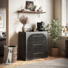 Upgrade your dining or living space with the BELLEZE Sideboard Cabinet. Measuring 15.75"D x 32.5"W x 31.9"H, it features 3 roomy drawers with 45mm slides for smooth, durable storage of dinnerware, books, or decorative items. The decorated drawer provide a sculpted, dimensional look, adding style and elegance while keeping contents neatly concealed. Crafted from durable MDF and accented with chopstick-style aluminum alloy handles-black on both ends with a golden center-this cabinet combines lasting durability with upscale detail. Delivered with secure packaging and clear instructions, it's easy to place and ready to elevate your home's organization and aesthetic.