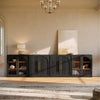 Create a stunning full-length modular sideboard wall unit combining two arched glass-door and two double-arc wood-door cabinets. Measuring 15.8"D x 130"W x 31.9"H, it offers generous storage with adjustable shelves for display and concealed organization. Crafted from durable MDF and accented with chopstick-style aluminum handles, this modern buffet cabinet blends elegance, functionality, and seamless modular design. Perfect for dining rooms, living areas, or entryways seeking beauty and flexibility in one cohesive piece.