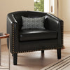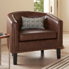 just what the room needed. I was finishing my new speakeasy and wanted the old red leather chair look. The color is just the perfect shade of rusty red. Elegant. So very easy to assemble, I mean screw in four legs. While it is not the most comfortable chair I have ever sat in, I didn't expect it would be given its shape and dimensions. But at 6'1'' and 210 I'm very comfortable and seem well built and love the rivet studding.