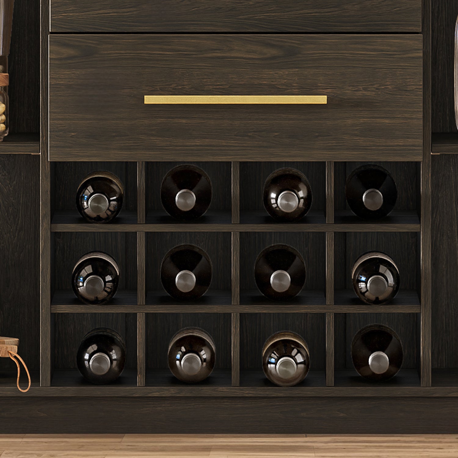 Keep your favorite wines beautifully displayed in this 55" wine cabinet's precision-crafted 12-bottle storage grid. Each bottle nestles securely in its own compartment, making selection easy while the warm wood finish adds sophistication to your space.