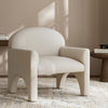 This beautifully crafted chair features soft, adding a cozy yet sophisticated touch to any room. The rounded backrest and armrests provide comfortable support, while the chair's unique arched legs, made of sturdy rubber wood, ensure stability and a distinctive style.