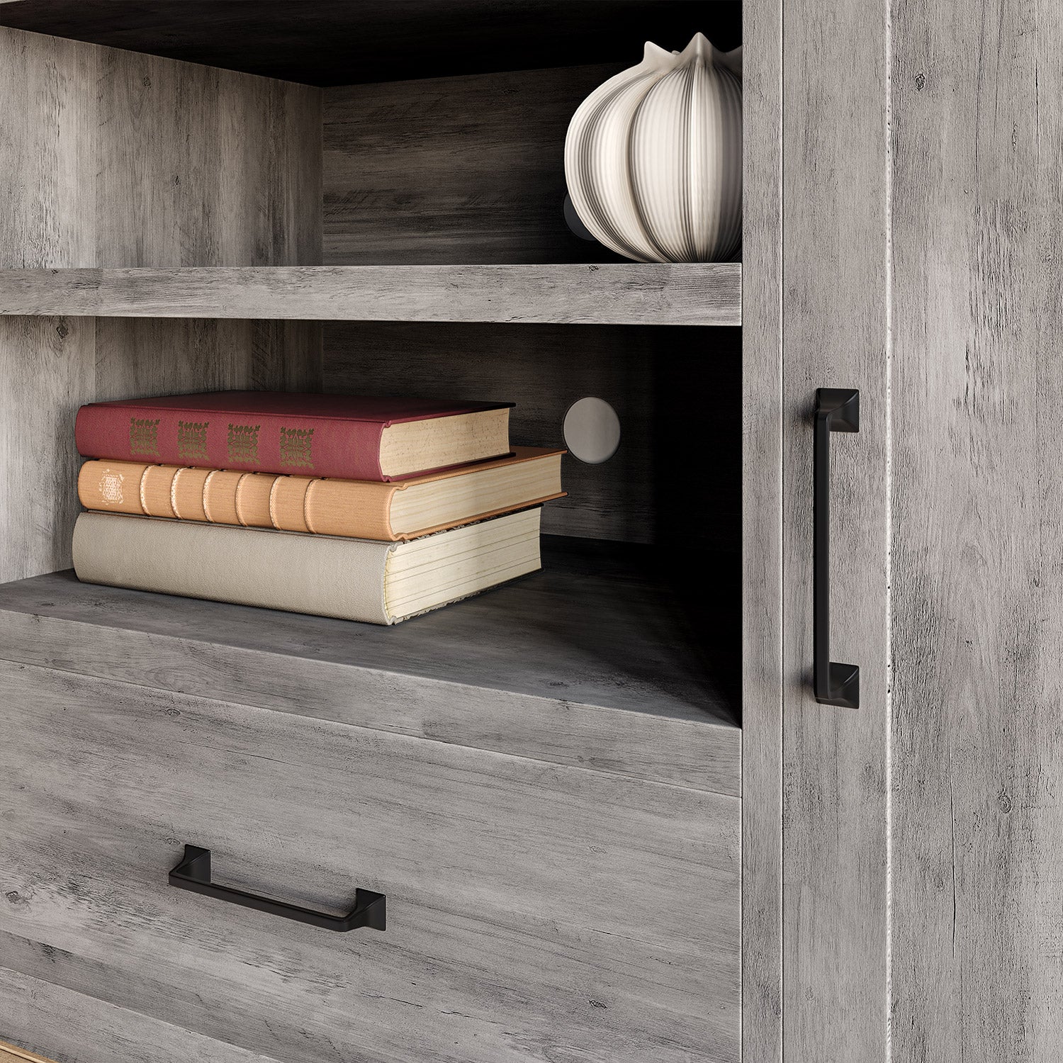 Dark metal handles give this TV stand that farmhouse-industrial vibe without trying too hard.