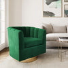 Zoe Upholstered Velvet Barrel Swivel Chair in Green or Blue